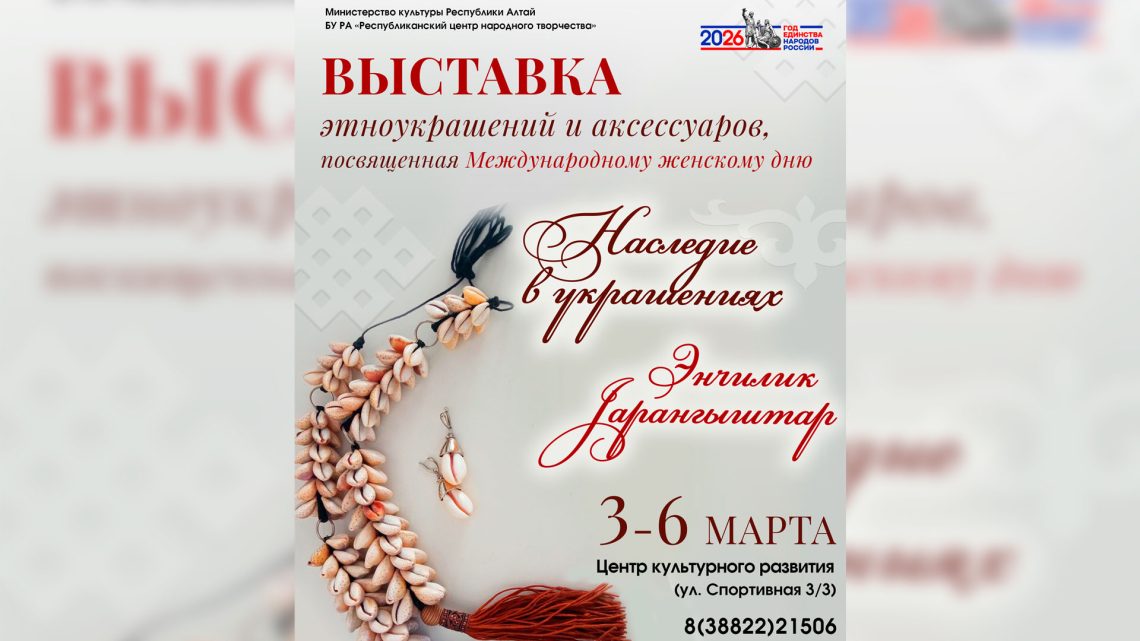 Дорогие друзья! С радостью приглашаем вас на выставку этноукрашений и аксессуаров «Энчилик jарангыштар-Наследие в украшениях», которая пройдёт с 3 по 6 марта. Это прекрасная возможность выбрать особенный подарок к 8 Марта — для себя и для своих родных, любимых. Изящные серьги, утончённые кольца, благородные колье и стильные браслеты — в … Читать далее Выставка «Энчилик jарангыштар-Наследие в украшениях» пройдет с 3 по 6 марта