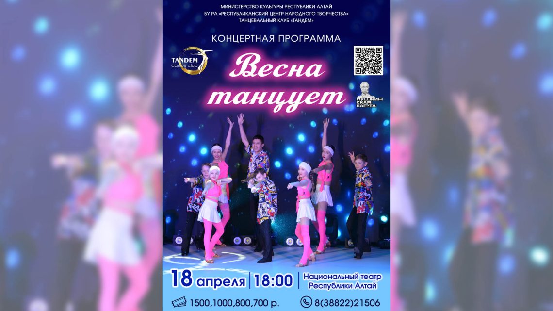 Весна стучится в окна, шелестит листьями и напевает тёплые мелодии… А значит, пришло время танцевать! 18 апреля танцевальный клуб «Тандем» приглашает на концерт «Весна танцует». Начало: 18-00 Место проведения: Национальный театр Республики Алтай Билеты в кассе театра и онлайн https://quicktickets.ru/gorno-altajsk-dci/s334 Билеты можно … Читать далее Танцевальный клуб «Тандем» приглашает на концерт «Весна танцует»